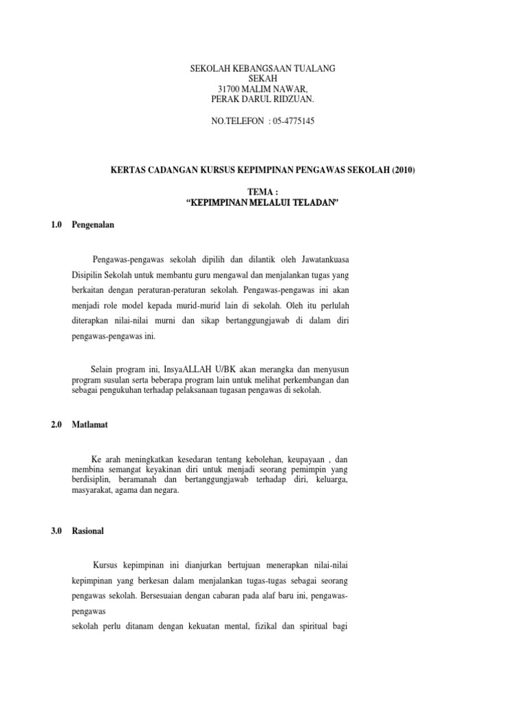 Oleh peserta diklat kepemimpinan tingkat ii angkatan xxxv di kabupaten bojonegoro, melalui proyek perubahan ini diharapkan peserta dapat. Sekolah kebangsaan bechah durian 17020 pasir mas, kelantan kertas kerja kem kepimpinan unit hem sk bechah durian tarikh : Kertas kerja kem pemantapan sahsiah murid. Kepemimpinan atau leadership merupakan sebuah kemampuan yang dimiliki oleh seseorang untuk mempengaruhi orang lain (dalam hal pekerjaan) yang bertujuan untuk mencapai tujuan organisasi yang telah ditetapkan sebelumnya. Kisah kepemimpinan eugene kranz dan juga kerja sama solid antar awak kapal luar angkasa bersama dengan kru nasa ini akhirnya menjadi sebuah kisah nyata inspiratif. Pengertian kepemimpinan adalah sebuah kemampuan atau kekuatan dalam diri seseorang untuk mempengaruhi orang lain dalam hal bekerja 5. Pemimpin sangat berperan dalam pencapaian tujuan perusahaan. Kertas kerja kem kepimpinan peningkatan sakhsiah dan. Kertas kerja kem pengawas 2013 by emymastura 14645 views. Nyatakan secara jelas tujuan kertas kerja yang disediakan samada untuk; Kertas kerja kem kepimpinan pengawas. Badan pendidikan dan pelatihan keuangan. Berikut merupakan kertas kerja bagi program ini.